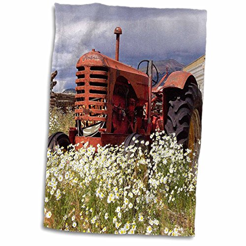 3D Rose Image of Vintage Tractor Out in the Country with Wild Flowers Hand Towel, 15" x 22"