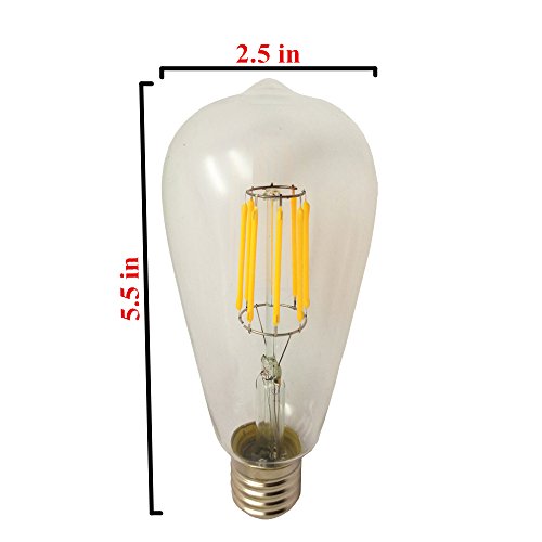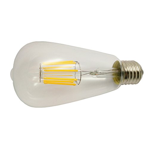 ST64 Dimmable 8 Watt E26/E27 Medium base LED filament bulb, equivalent to 70 Watt standard incandescent light bulb.