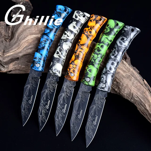 | [해외] Ghillie 접는 블레이드 나이프 캠핑 서바이벌 나이프 미니 블레이드 포켓 과일 칼, ABS 유령 핸들 아름다운 선물 칼 5 색상 |