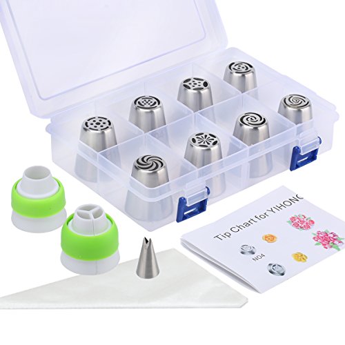 - Perfect Gift for Baking Lovers& Risk Free: The baking tools contain the most popular rose tips of 7 petals and 10 petals, tulip nozzles tips of 5 petals, 6 petals, as well as May tulip tips and more; suitable quantity Russian tips complete baking supplies combined with a nice organized container, making it a great gift on birthday, valentine’s day, Mother’s day, anniversary, housewarming and more! We also provide lifetime guarantee to the cake decorating supplies, order without risk!