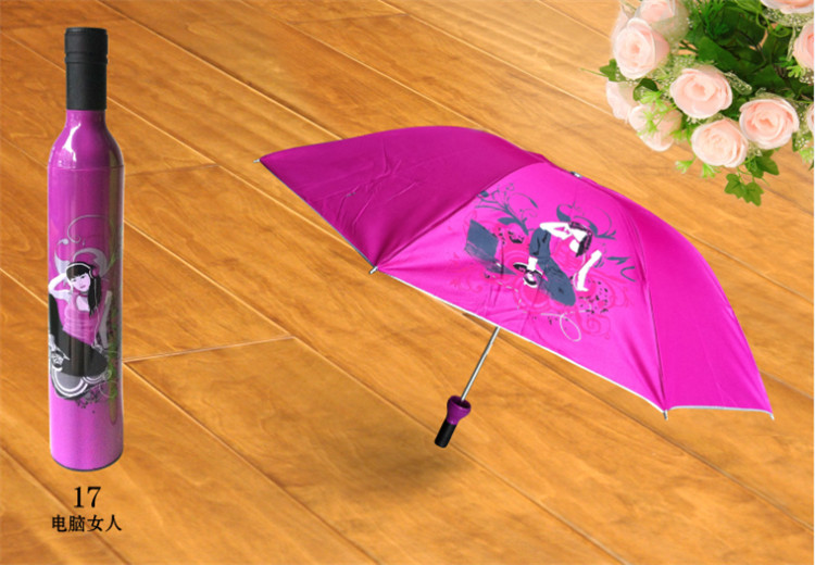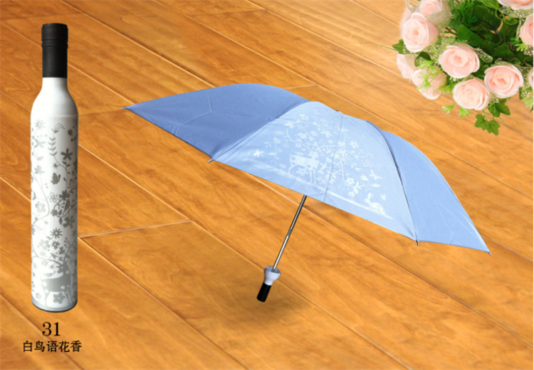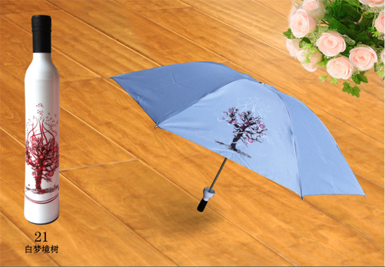 Product Description: This is not just a beautiful bottle, open the top of the bottle to pull out is a beautiful umbrella; this unique shape of the bottle, the umbrella is stored inside, not only can be placed vertically, open the bottle and pull out the lanyard Can also be linked to become a wonderful furnishings; wet umbrella installed inside will not leak; distinctive, full of fun products as a gift is also a good choice ......