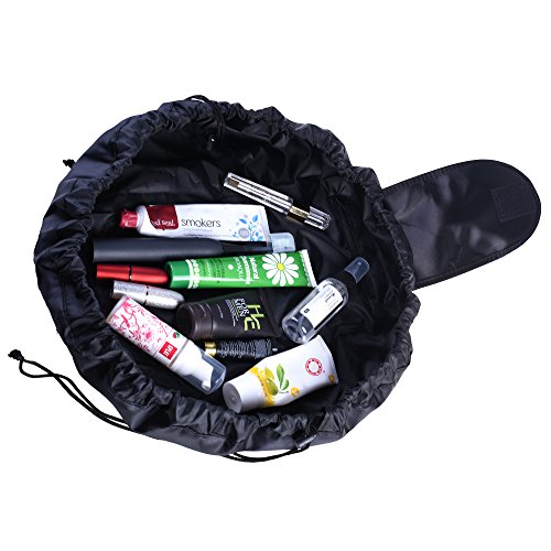 Beautyflier Drawstring Cosmetic Bag Multifunctional Large Capacity Waterproof Makeup Toiletry Bag Portable Quick Pack Travel Bag Black