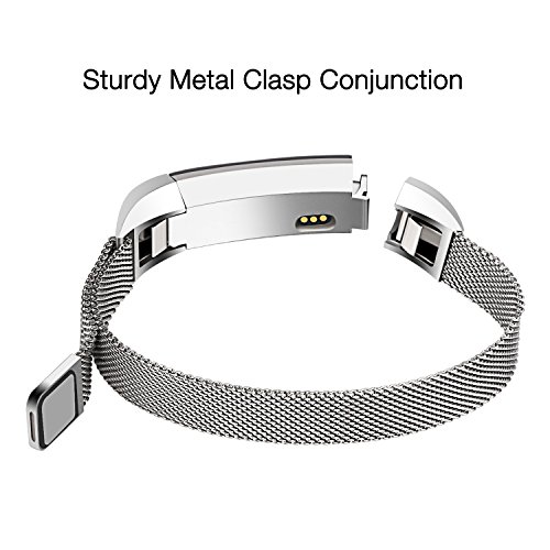 ALNBO Fitbit Alta HR and Alta Bands Metal Milanese Stainless Steel Replacement Metal Band For Fitbit Alta HR and Alta Silver Black