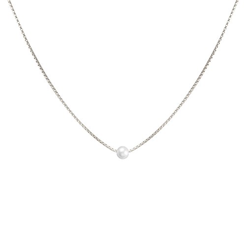 12.5" silver dipped silky box chain necklace with a 6.5mm pearl