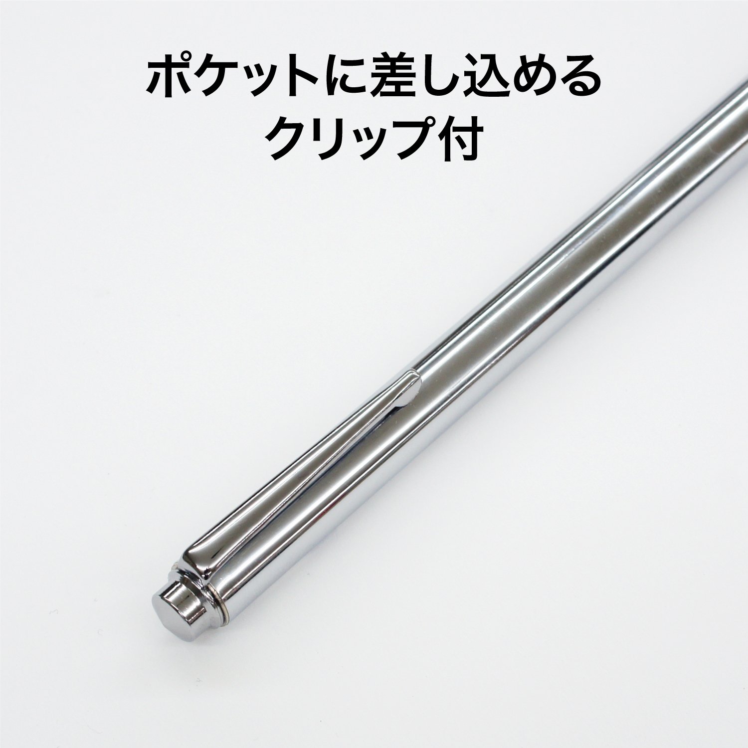 With clip that can be inserted in the pocket.
