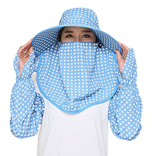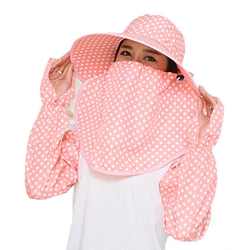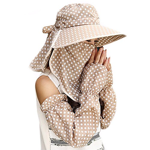 | Guerbrilla Women Wide Brim Summer Sun Flap Cap Hat Neck Cover Face Mask UPF 50 |