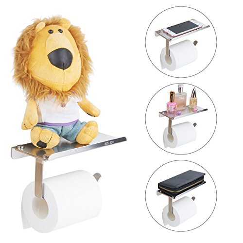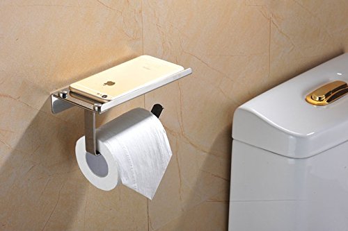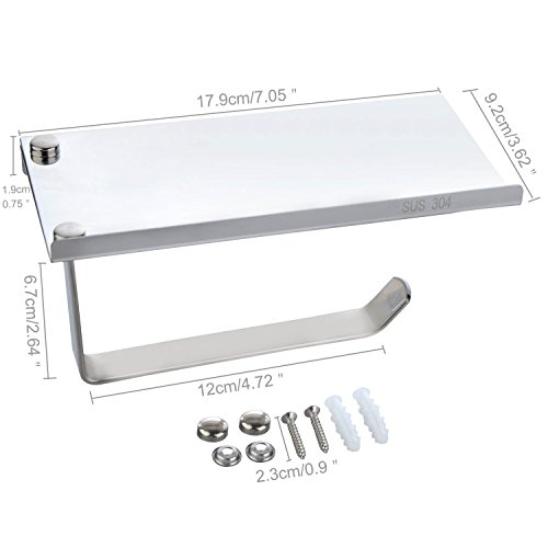 Toilet Paper Holder with Shelf , Wall Mount SUS304 Stainless Steel Bathroom Tissue Towel Storage Rack