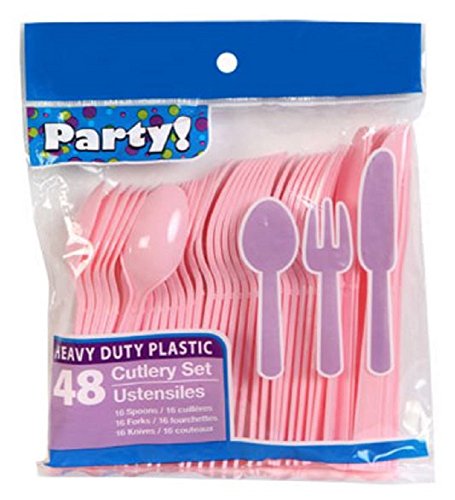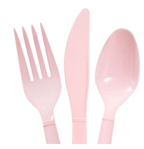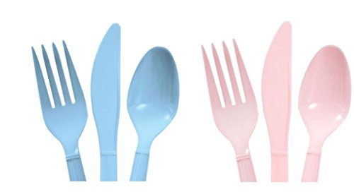 Baby Blue & Light Pink Heavy Duty Plastic Cutlery Sets - 16 Spoons, 16 Forks, 16 Knives - 2 packs of 48 each 96 pcs total - One Blue & One Pink