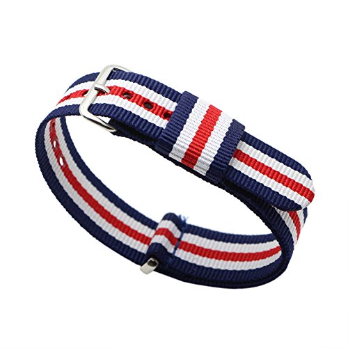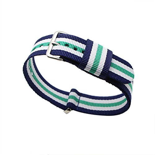 - Feature : 3PC nato watch band(Navy Blue /White/Green,Navy Blue /White/Red,Navy Blue /White/Pink) / Easily Interchangeable Replacement Watch Strap / fit for 20mm lug width watch band / 100% stainless Steel hardware / Width:20mm , Length:about 260mm