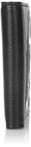 100 percent polyurethane black bi-fold wallet, debussed chevron logo, and branded flag label at bottom left front of wallet. 9 with x 3.5 h