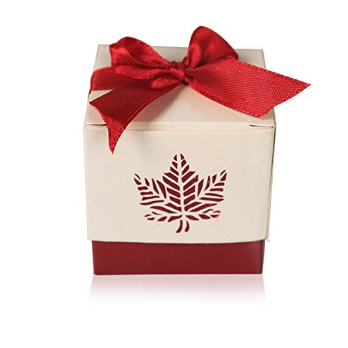 HLJgift Creative European Style Maple Pattern 3D Candy Paper Boxes Bags Party Wedding Favors Gift Boxes 50PCS (Wine Red)