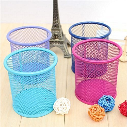 UDTEE 4PCS Colorful Steel Mesh Pencil Cup/Pen Holder/Ruler Organizer/Desk Sorter/Clips Collection Tub,Blue/Hot Pink/Black/Green/Orange Etc.(Random Color)