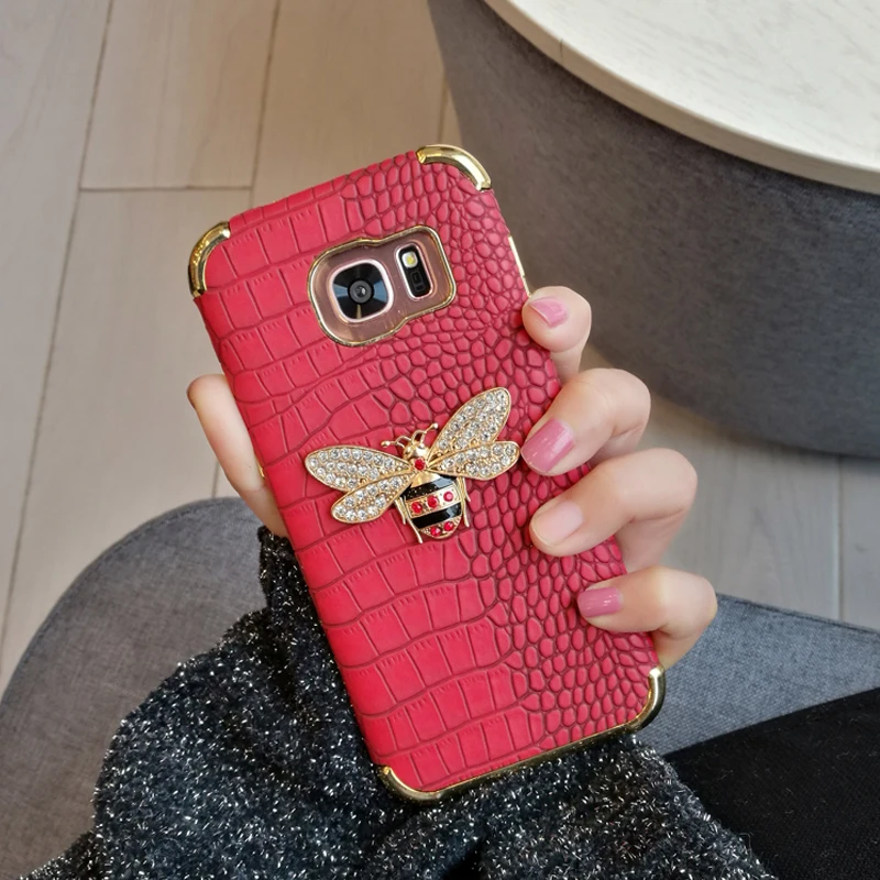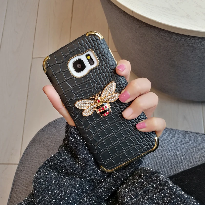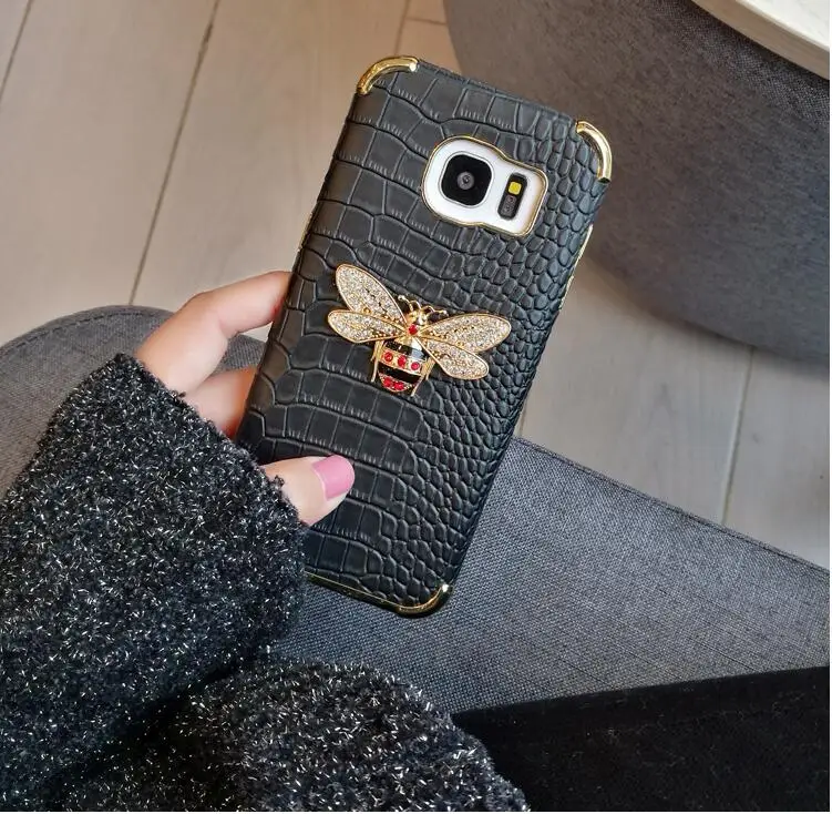 feature 2:Leather Case DIY Bling Glitter Crystal Bee Soft Leather Back Cover