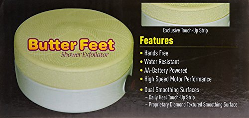 -. Feature : The most convenient solution for smooth feet / Get buttery smooth feet in your own shower / World's first and only hands-free shower foot spa exfoliator / Water resistant & battery powered / Doctor designed