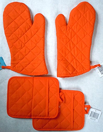 - Includes 2 Oven Mitts and 2 Pot Holders Bright Orange