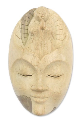 NOVICA Decorative Religious Hibiscus Wood Mask, Brown, 'Face Of Piety'
