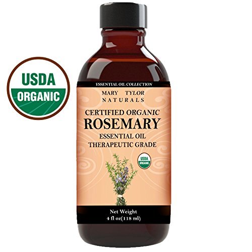 USDA CERTIFIED ORGANIC Rosemary Essential oil, Large 4 oz Size, 100% Pure and Natural, Has a Clear, Fresh and Stimulating Rosemary Fragrance.