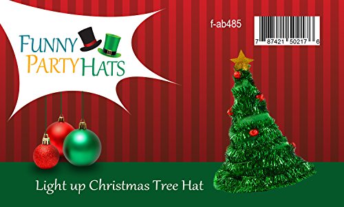 Product Description Choose from one of these fun Christmas theme holiday hats. Add merry cheer to your costume with one of these seasonal options: a Christmas light-up tree hat, a Plush Christmas tree hat, a Christmas Spring Headband, or a Cowboy style Santa Hat. One-size for adults, great quality, unique items. 0