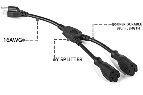 ClearMax 3 Prong Y Splitter Cable Power Extension Cord - Cable Strip Outlet Saver - Power Cord Splitter - 16AWG - 1 Foot - Black