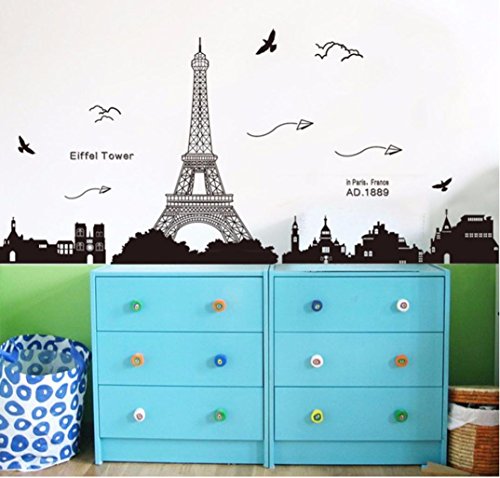 -. Title : Ussore Eiffel Tower Removable Decor Environmentally Mural Wall Stickers Decal Wallpaper For Kids Home living room bedroom bathroom kitchen Office
