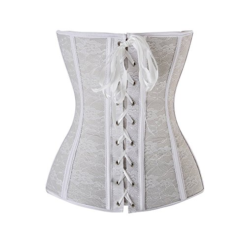 (OMG_Shop)/Women/Intimate Apparel/DIRECT FROM USA/OMG White Sheer Lace up Top Overbus t Corset in Floral Pattern and Satin Trim