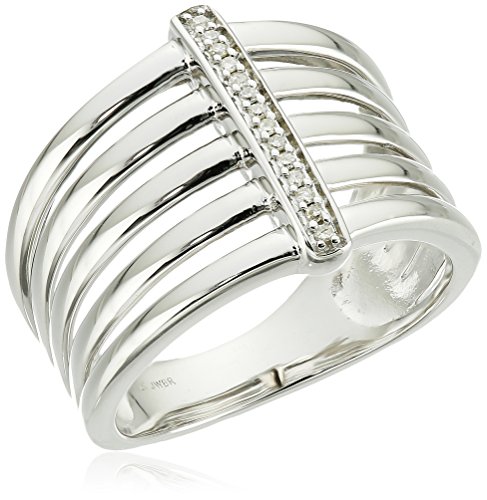 -. Title : Sterling Silver with White Diamond Accent Linear Cage Ring