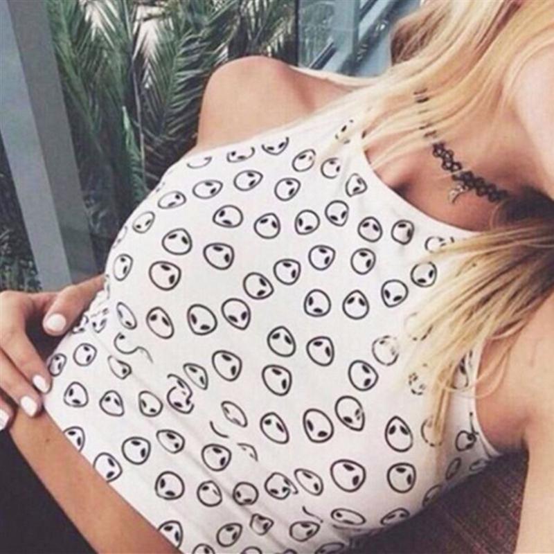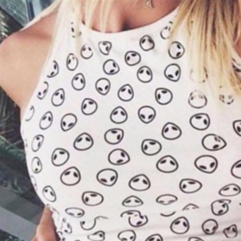 Round Neck,Sleeveless,Alien Print