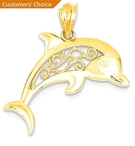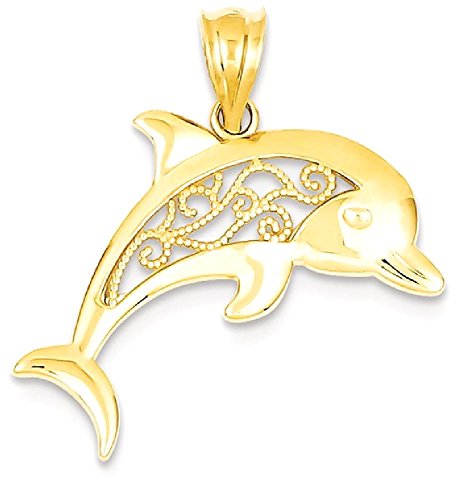 ICECARATS DESIGNER JEWELRY 14K YELLOW GOLD FILIGREE DOLPHIN PENDANT CHARM NECKLACE