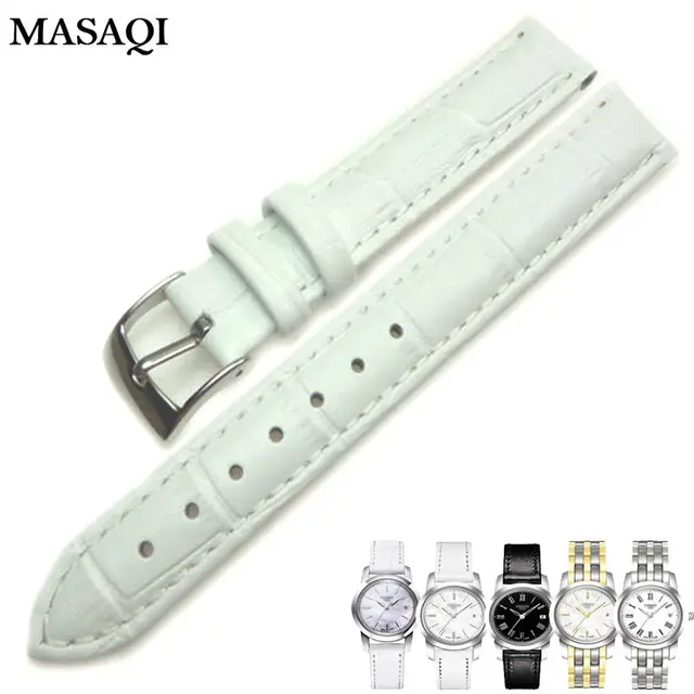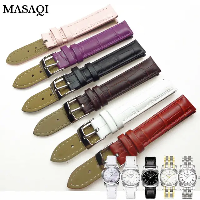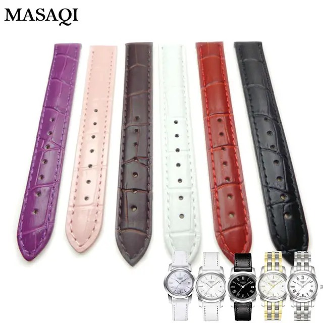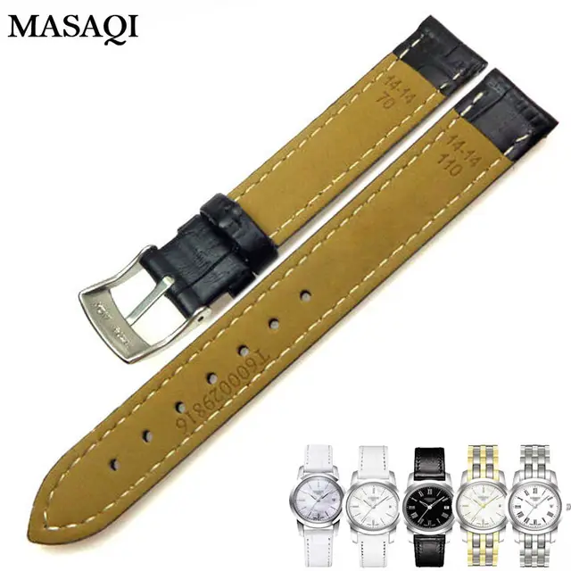 Masaqi 여성 시계 밴드 tissot 1853 t033410 정품 가죽 14 미리메터 시계 스트랩 높은 품질의 가죽 시계 줄