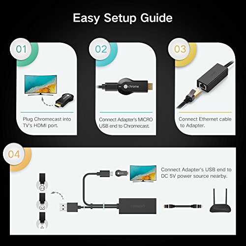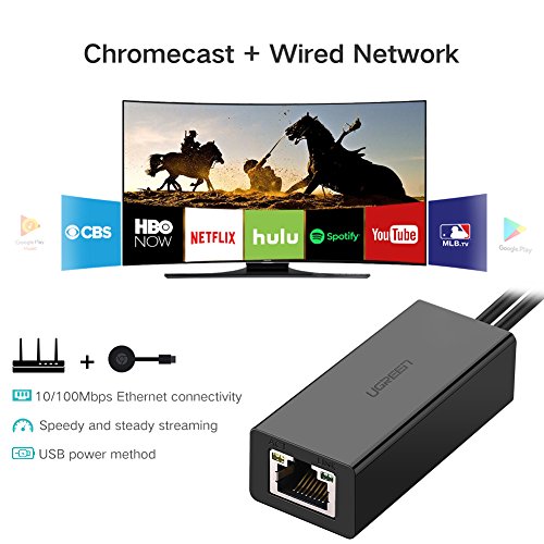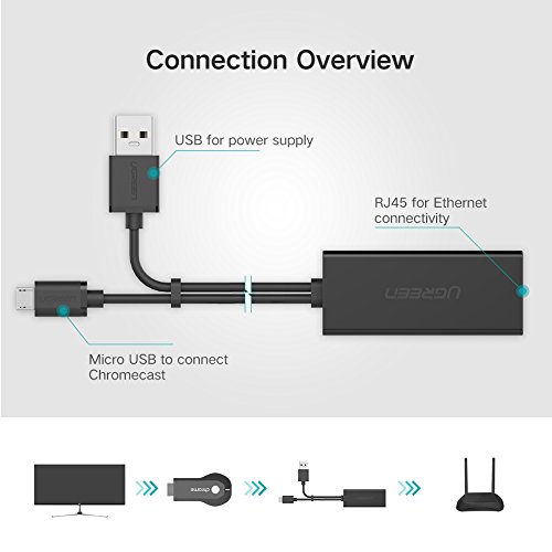 UGREEN Ethernet Adapter for Chromecast, Chromecast Ultra with Micro USB to RJ 45 Ethernet Adater for Chromecast with Power Supply
