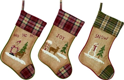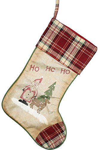 Ho Ho HO Snow Falling Plaid 20 inch Fabric Christmas Stocking Decoration