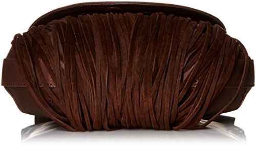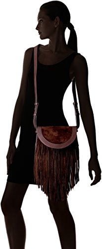Mixed-media saddle bag front fold-over flap and cascade of fringe trim at front