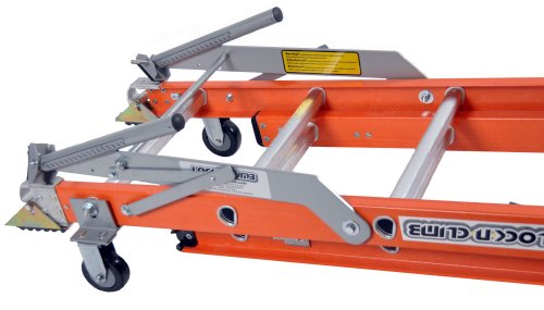-. Feature : Allows operators to roll heavy ladders and help prevent back and arm strain / Through-the-rung design allows for easy assembly in less then 5 minutes / Made of sturdy 60-61 Grade aluminum powder coated materials / Patent pending design and function / Patent design and function; lifetime warranty on parts