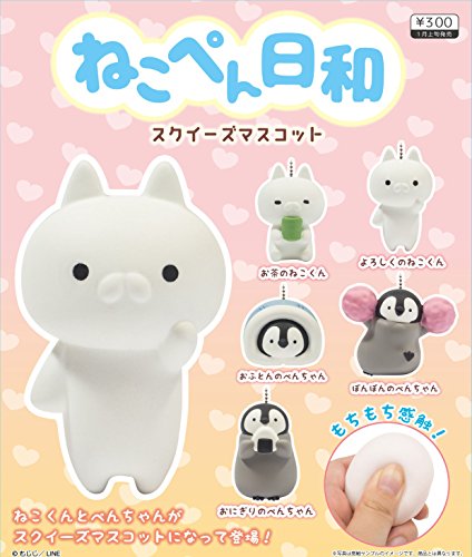 -. Feature : 商品名:ねこぺん日和 スクイーズマスコット 【全5種セット(フルコンプ)】ガチャガチャ カプセル / 内容:お茶のねこくん、よろしくのねこくん、おふとんのぺんちゃん、ぼんぼんのぺんちゃん、おにぎりのぺんちゃんの全5種セット / フィギュアサイズ:約55-63mm / (c)もじじ / LINE