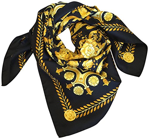 VERSACE 100% SILK FOULARD SQUARE SCARF BLACK GOLD