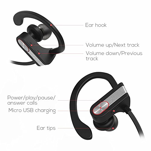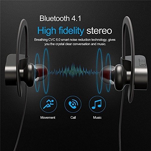 -. Feature : [Portable] - Super lightweight, easy to take it everywhere, suitable for any situation. / [Fashion] - Compact but Unique design, hook style and sweatproof feature make it more safe to do Sport/Exercise. / [Comfortable] - Soft silicon hooks and earplugs fit perfectly with your ear, comfortable to enjoy long music/talking time. / [Universal] - Latest V4.1 Bluetooth with Built-in microphone, compatible with most bluetooth enabled cellphone and devices. / [High Performance] - Use CVC 6.0 noise reduction technology and advanced APTX technology, offer you exquisite and clear sound. Cheaper one is inferior than it/Better one is more expensive than it.