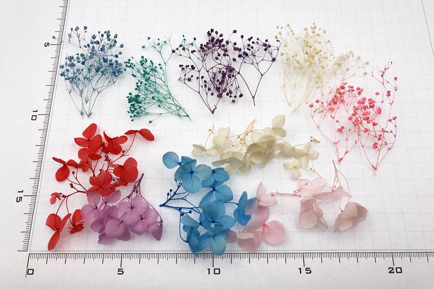 It is a small flower dry flower (hydrangea preserved flower) to be used for enclosing glass dome, resin accessory, her barium etc.