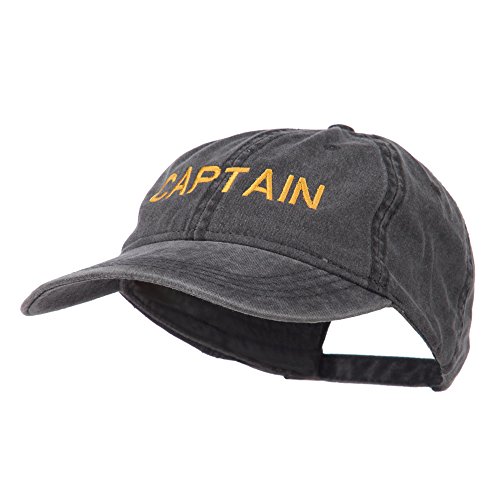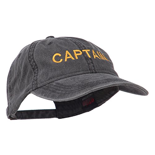 -. Binding : Apparel -. Brand : E4hats -. Color : Black -. Department : mens -. Feature : Made of 100% cotton. / One size fits most with an adjustable buckle closure, fitting up to XL size. / Same material inner hatband. / Adult/Unisex. / Crown measures 3 1/2 inches deep. -. ProductGroup : Apparel -. ProductTypeName : HAT -. Title : Captain Embroidered Low Profile Washed Cap - Black