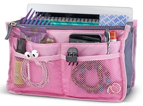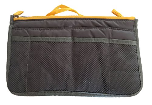 STORE, ORGANIZE, KEEP CLUTTER FREE YOUR EVERYDAY ESSENTIAL AND COSMETICS IN ONE PLACE. Store, keep and organize your cellphone, smartphone, credit cards, money, coins, tickets, keys, cosmetics, toiletry, make up Items, medicines, first aid items and other essential in this expandable travel insert handbag organizer for ladies, women, and girls, in this handy organizer insert that you can quickly and easily transfer into any purse, pocketbook, tote bag, handbag, or even travel bag, duffle bag or suitcase, instantly. INSTANTLY TRANSFERS TO ANY BAG, PURSE, POCKETBOOK, TOTE BAG OF THE DAY AND SAVES TIME. Keep all your daily needed essentials organized and take them with you instantly anytime. Just pick up this insert handbag organizer and shift it into the tote bag or purse for the day in an instant. WITH HANDLES AND EXPANDABLE FOR EXTRA STORAGE WHEN NEEDED. With 13 small to large compartments, pockets, pouches this women's purse organizer insert for handbags, totes has 1 large pockets, 4 small pockets, 2 zipper pocket and 6 mesh pockets. Perfect for holding cosmetics, toiletry, cell phone, cards, pens, keys, purse, make-up and other essential items. Folded is 11.25" W x 6.75" H x 0.9" D and expands to 11.25" W x 6.75" H and 4.0" D when filled. LIGHTWEIGHT, WASHABLE, AND EASY TO MAINTAIN. Made of durable nylon and needing very little care and maintenance. To clean just wash by hand or by machine and let air dry. PROTECTS YOUR EXPENSIVE BAGS AND PURSES FROM DAMAGE. Will prevent wear and tear of your more expensive purse, or tote bags. Keep your cosmetics and make up items in this kangaroo insert liner hobo bag organizer, and do not let an open lipstick or other loose cosmetic or make up item destroy your expensive designer luxury handbags and purses. Scroll to the top and CLICK the ADD TO CART button to Order Now! 0 |