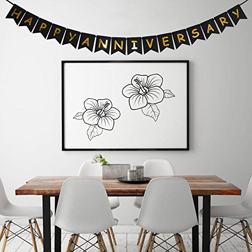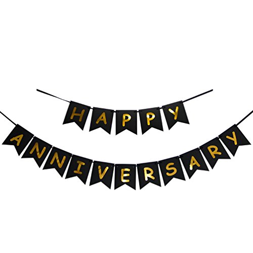INNORU Happy Anniversary Banner - Gold Foiled Sign - Wedding Anniversary Party Decoration Photo Props