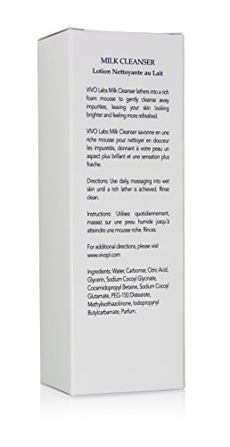 Bestow luminosity and clarity to your skin with the Vivo Labs Face Milk Cleanser. This gentle, refreshing facial cleanser transforms into a creamy lather, dissolving makeup residue, dirt and other impurities from your pores to leave skin feeling energized, silky smooth and illuminated. Use daily to minimize the appearance of acne, fine lines and wrinkles and effectively prepare your face for your daily anti aging skin care regimen.Feature