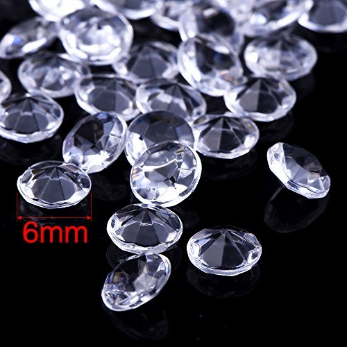 -. Feature : Each diamond is made of acrylic, free from peculiar smell; Not suitable for children / Suitable for party decorations, table scatter, vase fillers, DIY accessories, wedding, etc. / Diameter: 6 mm, small, brilliant, sparkling, and fun / These acrylic diamond crystals add sparkle and glamour to your wedding and party tables / Simply scattering some diamond in certain places where you want makes it elegant decoration