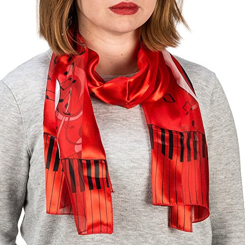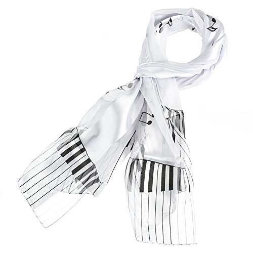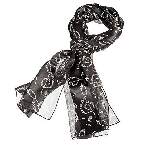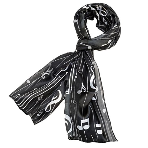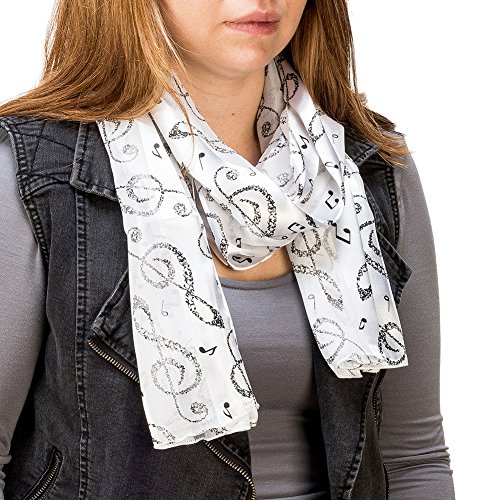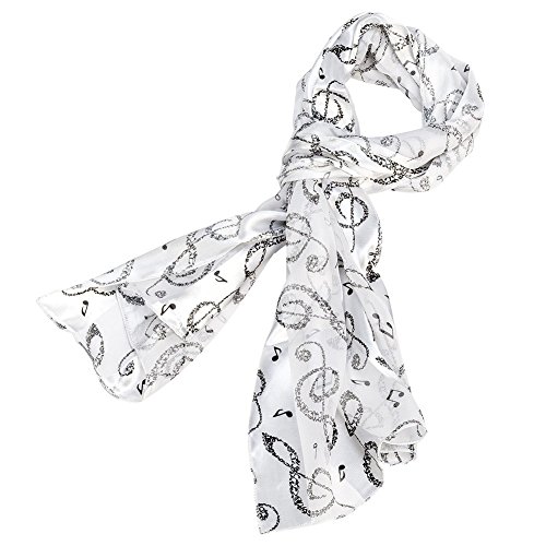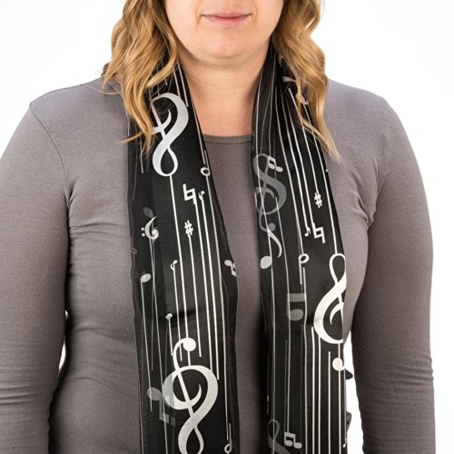 Product DescriptionShow your musical side with this White Music Note Scarf. Perfect for a concert or trip to the Opera. This scarf measures 13" x 60" and is available in a few colors.0