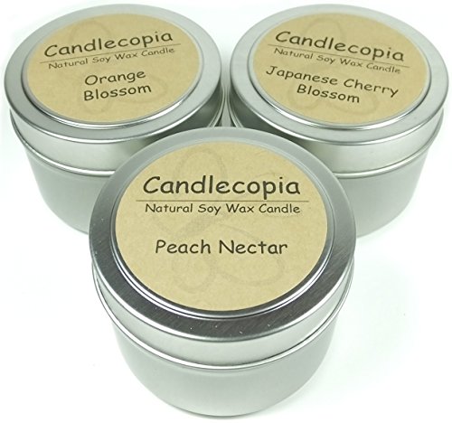 - Title : Candlecopia Opulent Orchard 3-Pack Scented Soy Candles - Includes Orange Blossom, Japanese Cherry Blossom and Peach Nectar - 80+ Hours Burn Time in three 4-ounce Travel Tins