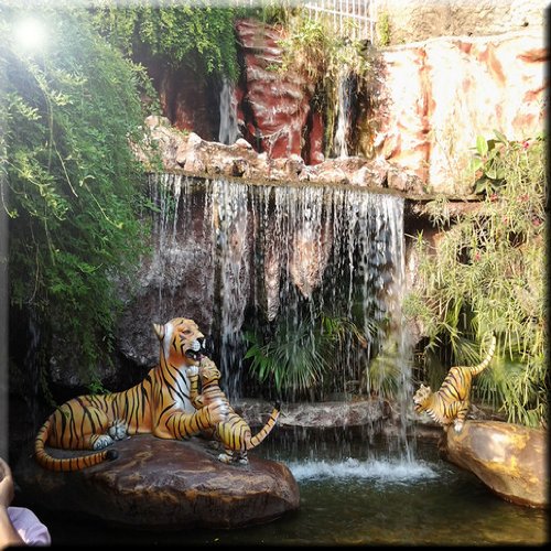 Rikki Knight RK-6intilec-9170 6" X 6" Fake Tigers Laying in Natures Beauty Waterfall Design Ceramic Art Tile