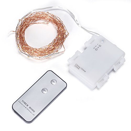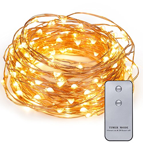 Kohree 120 LEDs Battery Operated String Light 20ft Copper Wire, Waterproof Design Decor Rope Lights for Festival, Christmas, Wedding, Holiday and Party with Remote Control, Warm White