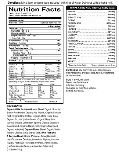 Garden of Life Greens and Protein Powder - Organic Raw Protein and Greens with Probiotics/Enzymes, Vegan, Gluten-Free, Vanilla, 19.3oz (1lb 30...