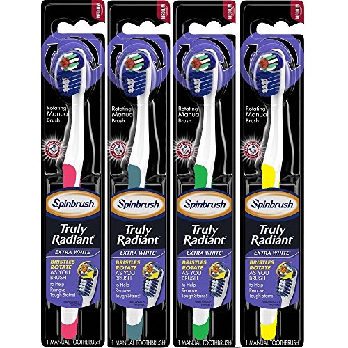 -. Title : Arm & Hammer Spinbrush Truly Radiant Extra White Manual Toothbrush, Medium, Colors Vary (4)