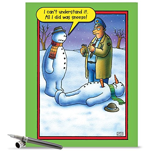 J5706XSG Jumbo Funny Christmas Card: Snowman Sneeze With Envelope (Extra Large Version: 8.5'' x 11'')