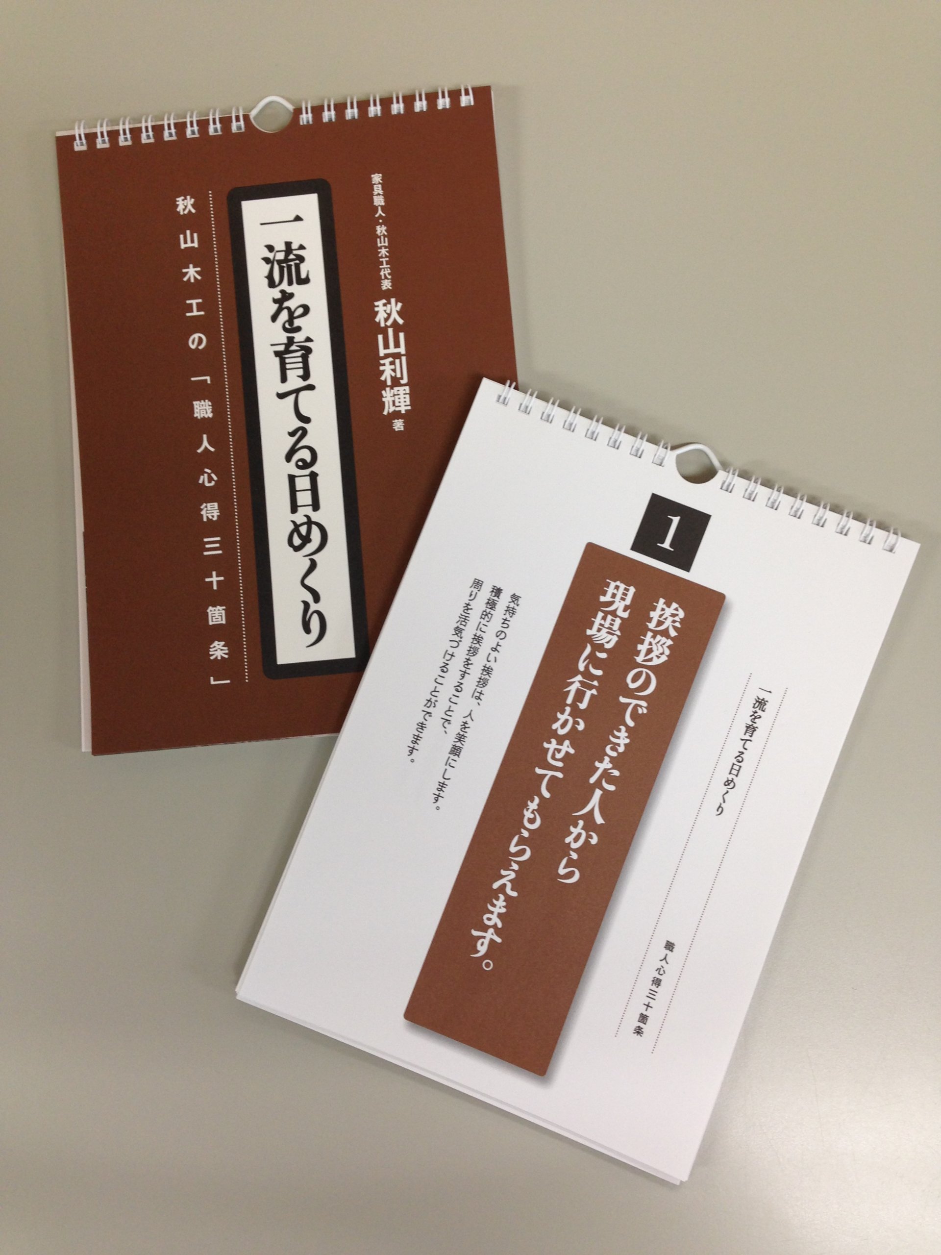 "Akiyama woodworker 's mastery of craftsmen raising a top ranking" appears as a wall-hanging and daily schedule.
